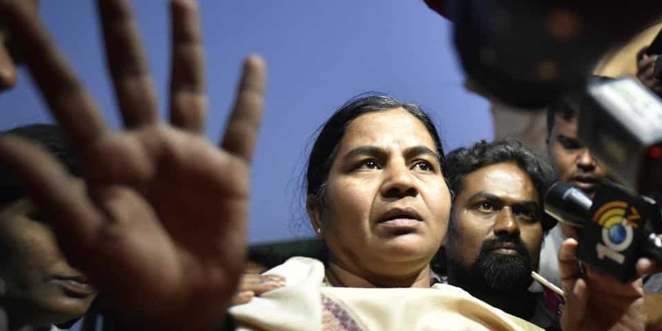 Rohith Vemula’s mother Radhika Vemula detained by Delhi Police during the candle march in New Delhi, February 24(Ravi Choudhary/HT Photo)