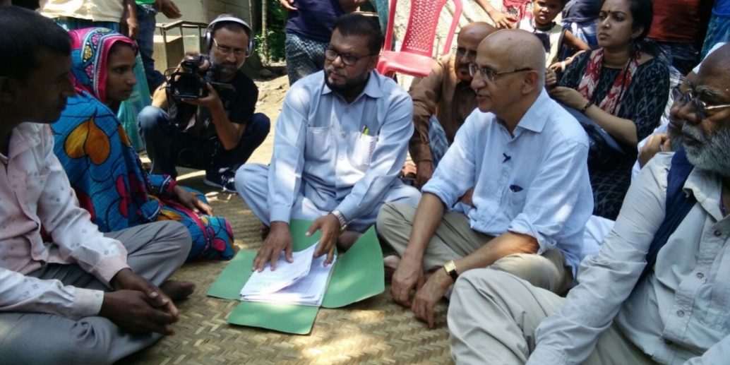 Harsh Mander (R) and John Dayal (second from right) with the family of two lynching victimes during the Karwan-e-Mohabbat. Credit: Twitter/Karwan-e-Mohabbat