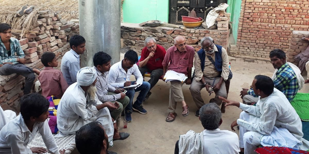 The Karwan e Mohabbat team speaks with a family in Mewat, Haryana.